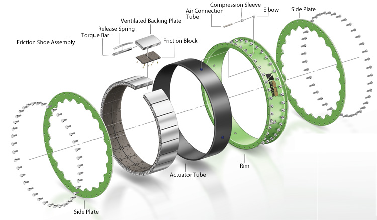 or brake. The unique design of the ventilated friction shoe assembly allows for a high volume of air flow across the entire